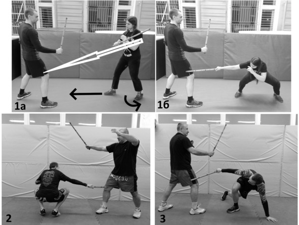 Рисунок 8. Атаки ноги: 1 – наклоном; 2 – приседанием; 3 – зашагиванием
