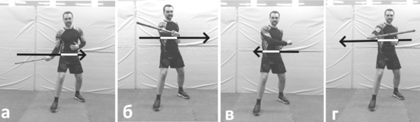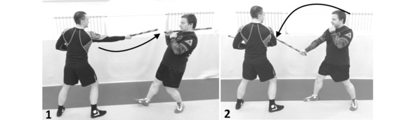 Позволяет при нанесении мощных инерционных ударов последовательно двумя палками не оставаться в положении со скрещенными руками.