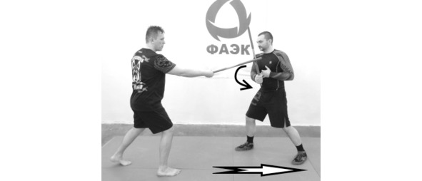 Рисунок 12. Защита вертикальной палкой с шагом назад