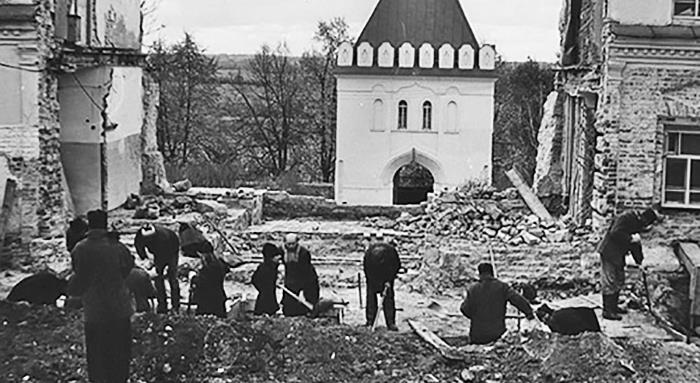 «Я испугалась и бросилась бежать к монастырской трапезной. Звала на помощь, обегая Введенский храм справа. Поэтому мужчину, снимавшего шинель, я видела всего одно мгновение… Без шинели я его не видела. Хлястик шинели был оторван на талии. Шинель была длинная. Головного убора на нем не было. Какие волосы – не могу сказать».