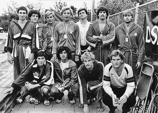 Игорь Росляков с командой по водному поло (сидит слева)