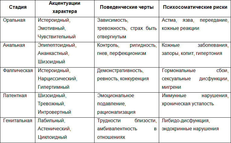 1.5 Диагностическая таблица: стадия → акцентуация → соматика