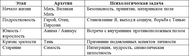 • Архетипы соотносятся с психосексуальными стадиями (глава 1):