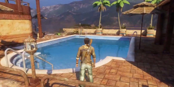 В игре Uncharted 2: Among Thieves (2009, Naughty Dog), главный герой, путешествуя по Непалу, забирается на крышу самого высокого здания в городе. Чтобы сделать это место более запоминающимся, дизайнеры решили разместить на крыше отеля бассейн. В нем можно поплавать и даже послушать то, как шутят персонажи на тему необычности расположения бассейна на крыше.