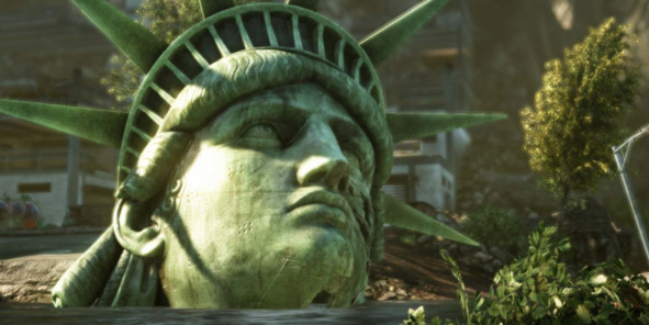 Пример из игры Crysis 2 (2011, Crytek) – исследуя улицы Нью-Йорка, на одном из уровней можно найти оторванную голову Статуи Свободы. Встретив необычный для этого места объект, игрок сразу же задастся вопросом о том, каким образом эта часть статуи оказалась здесь, и, тем самым, неосознанно запомнит этот уровень.
