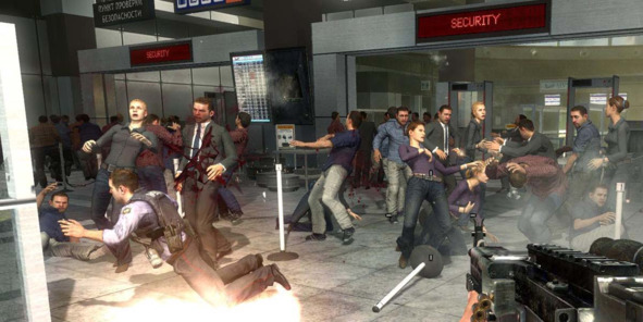 Уровень из Call of Duty: Modern Warfare 2 (2009, Infinity Ward) под названием «Ни слова по-русски» в своё время наделал очень много шума в игровой прессе как раз из-за использования шокирующей сцены, в которой террористы расстреливают гражданских в одном из российских аэропортов.