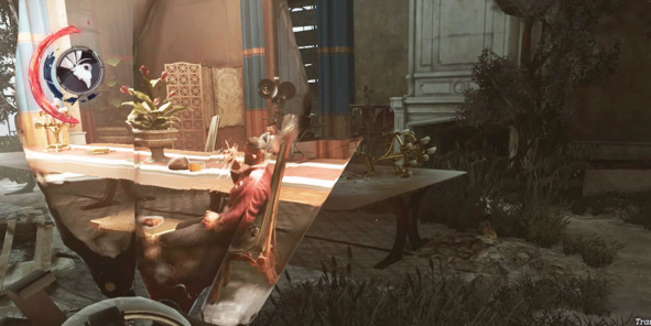 Геймплей уровня «A Crack in the Slab» из Dishonored 2 (2016, Arkane Studios) целиком и полностью основывается на уникальной игровой механике с прыжками во времени. Игроку выдают магический предмет, позволяющий переключаться между двумя параллельно идущими временами. Через специальное стекло можно видеть что происходит в данный момент в другом измерении. В прошлом особняк обитаем и хорошо охраняется, в то время как в настоящем он уже заброшен и населен трупными осами и дикими псами.