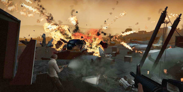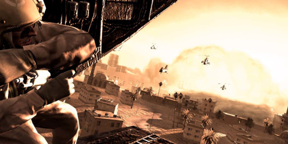 В Call of Duty 4: Modern Warfare (2007, Infinity Ward) операция по спасению экипажа сбитого вертолета заканчивается детонацией террористами ядерного заряда и впечатляющей по своему масштабу и драматизму «вау-сценой». Игрок, находясь на борту вертолета, наблюдает, как взрывная волна сносит десяток вертолетов и стирает с лица земли небольшой арабский городок.