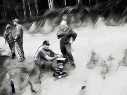 Утром, едва открыв полглаза, побрел посмотреть на остальные таблички. Каково же было мое удивление, когда вместо еще трех табличек, лежавших, как и положено могильным – на равном расстоянии друг от друга, я увидел три выцветших на солнце пакета из-под сока! А-а-а-а-а-а… вот это да-а-а… Предчувствуя, что сейчас наслушаюсь от друзей за вчерашние страшилки, все равно обрадовался: не кладбище! Да и первая табличка была именно табличкой и лежала на характерном для нее холмике. Загадка… Хотя места глухие, кругом «зоны» да прочие ИТУ. «Тайга – закон, медведь – прокурор», мало ли чего.