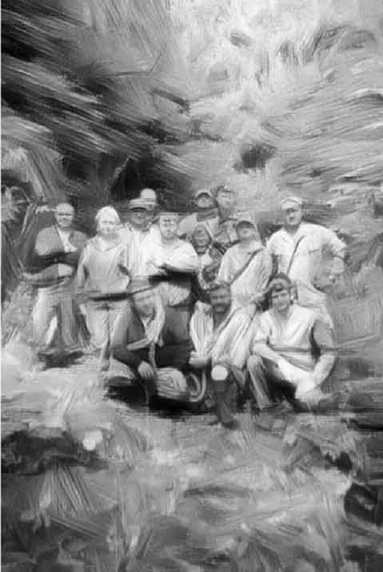 В это время одна из радиостанций, хрюкнув, закашляла и что-то невнятно прошипела. Догадавшись, что вторая группа на подходе, отправил наверх штурмана, корректировать маршрут. Ну и сам, еще немного полазив, с остальными выбрался наверх. Связавшись со второй группой, попросили их захватить побольше воды и взять забытые перчатки. Дождавшись группу, сфотографировались.