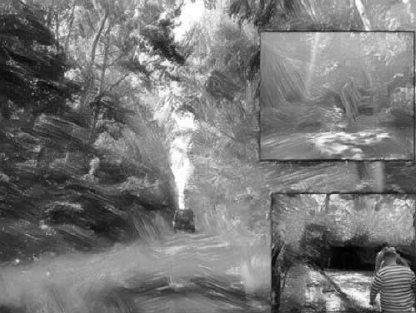 Вставшее солнце отвлекло проснувшуюся компанию от грустных мыслей, заставило позавтракать и распланировать весь день. Поскольку вчерашние полеты на «Джимах» под дождем оставили в баках бензина только-только до заправки, решили разделиться: одна группа, слив из канистр к себе в баки весь оставшийся бензин, двинется продолжать поиски пещеры. А вторая, собрав пустые канистры, ломанется на ближайшую заправку. А потом соединится с первой группой. Так и сделали.