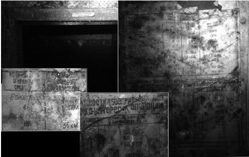 Чуть позже наткнулись еще на один «тяжелый ангар», в котором среди прочего мусора на полу обнаружили какие-то тоже писанные тушью (!) инструкции с указанием «наличия» каких-то ракет, их дальности, времени на перезарядку дивизионов и прочее.