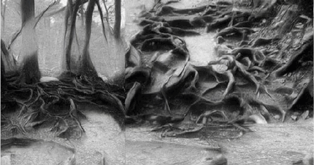– Я помню. Дед! Там множество растущих в лесу деревьев переплелись корнями, а землю между деревьями вымыло незамерзающим потоком воды.