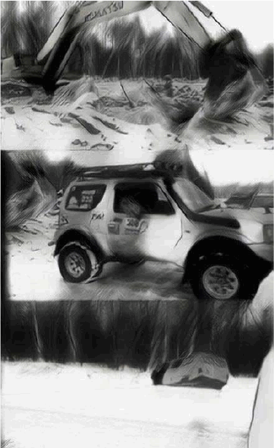 Едем. По дороге медленно движется «буханка» на приморских номерах. Ruslan-Shu и RBEMS начинают ее обгонять, и в этот момент… водила «буханки» чего-то пугается и совершает какие-то нелепые действия, от которых «буханка», как тяжелый истребитель, ложится в боевой разворот «налево» и начинает боком скользить перед «Джимами» по дороге. Аккурат в кювет через встречку. Руслан с Мишей при этом начинают выписывать кренделя по дороге, чтобы не столкнуться ни с буханкой, ни друг с другом. Ну… мастерство не пропьешь! Оба успешно справляются с балетом на льду и останавливаются. Вылезший из буханки пятидесятилетний водила, хлопая глазами, совершенно потерял дар речи от случившегося и растеряно стоял, глядя на свое движимое имущество, беспомощно скособоченное в обледенелом кювете. Его пассажирка нервно курила длинную дамскую сигарету, готовая сгрызть ее, как «соломку».