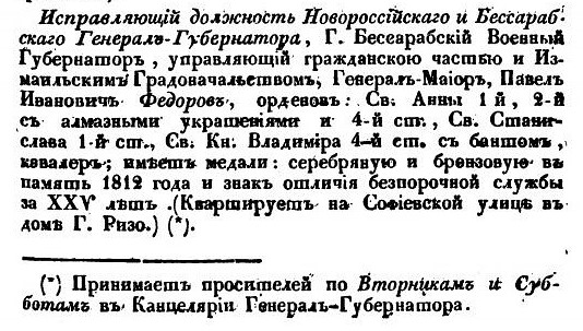 22 Таран Ангелина. Губернатор Павел Иванович Фёдоров – Бессарабский Потёмкин? 4.11.2016 – http://www.noi.md/ru/news_id/93701.