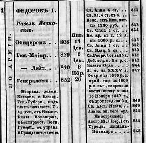 – В 1819 году на 28 году жизни Фёдоров оставил военную службу В ЧИНЕ ПОЛКОВНИКА (2);