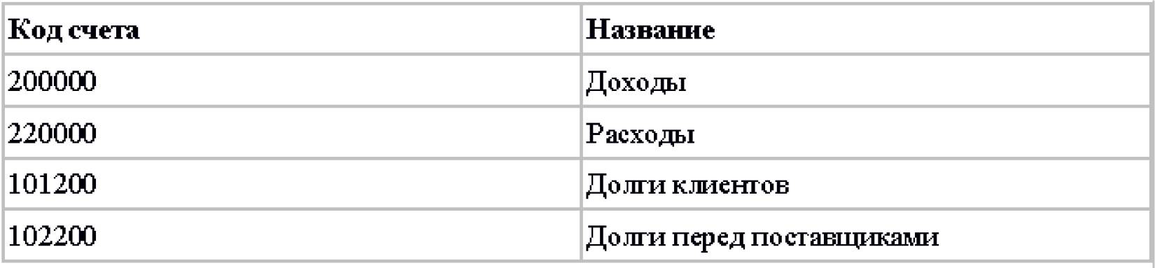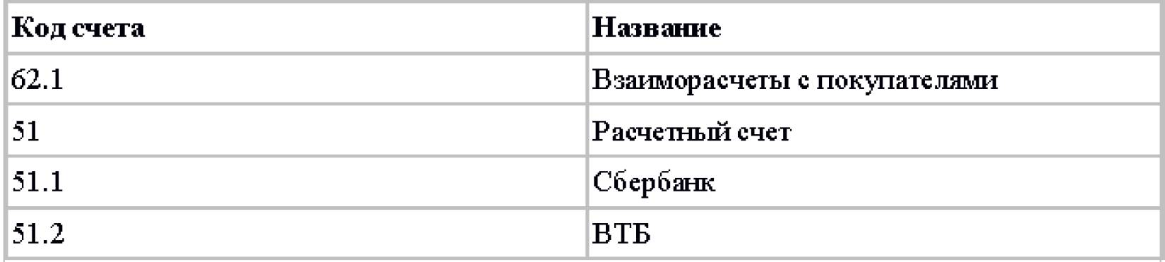 Пример кусочка плана счетов. Нумерация на западный манер.
