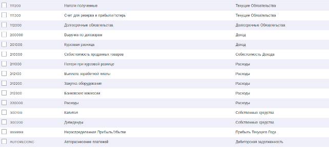 Пример кусочка плана счетов. Нумерация по РСБУ.