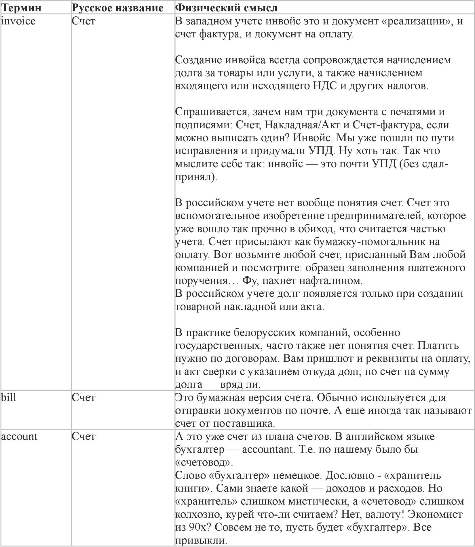 Мы с вами уже столкнулись с тем, что одним и тем же русским словом называются разные сущности учета. Приведу примеры.