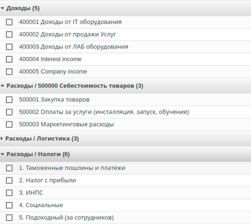Для целей управленческого учета и бюджетов вам нужны статьи аналитического учета.