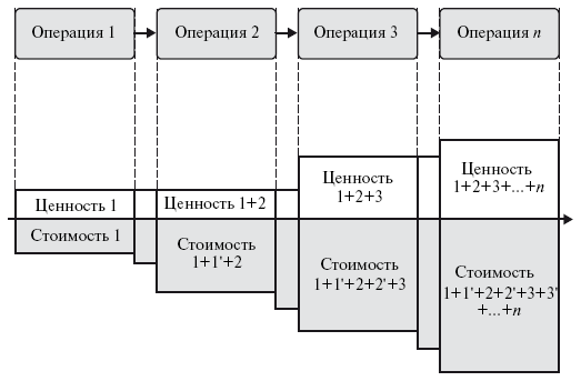 Рис. 1.8. Изменение ценности и стоимости в процессе производства