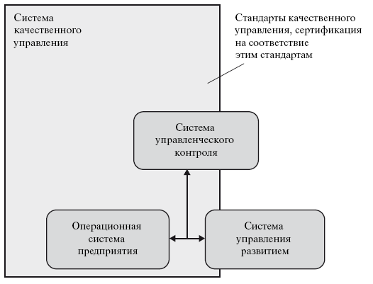 Система качественного управления на сегодняшний день практически полностью охватывает операционную систему предприятия, большую часть системы управленческого контроля и часть системы управления развитием (процесс стратегического планирования и процессы развития ресурсов).