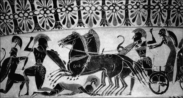 Боевая греческая колесница. Фрагмент росписи греческой вазы