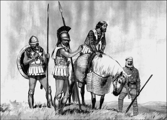 Греческие наемники вместе с Киром Младшим и персидским воином-телохранителем