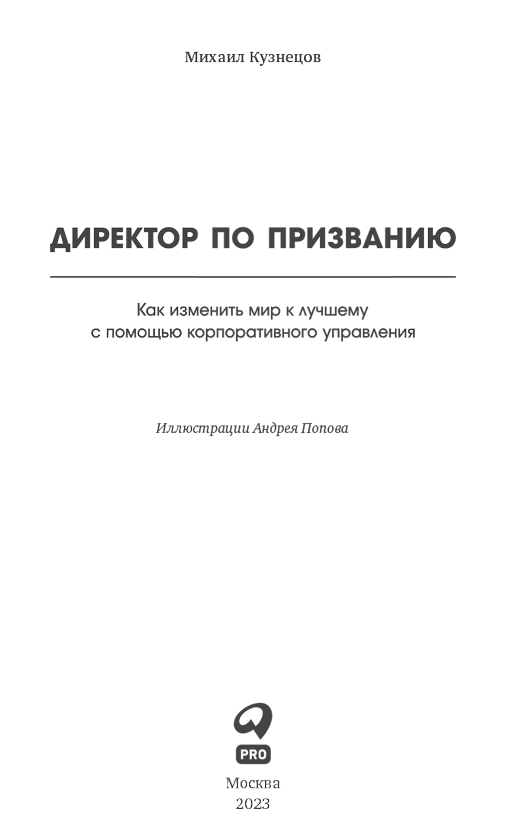 Директор по призванию: Как изменить мир к лучшему с помощью корпоративного управления / Михаил Кузнецов. – М.: Альпина ПРО, 2023.