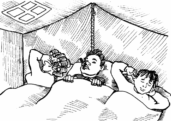 – Подождите, – вступил в разговор Колька, – силой тут и вправду мало что можно сделать. Надо что-то другое придумать. Я вот, например, слышал, что если человека, который храпит во сне, испугать, то он после храпеть никогда не будет.