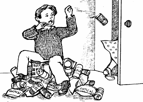 А если вдруг заметил, что домашние не торопятся, тогда схватил бы ремень и… Нет, это не годится. Лучше пусть будет так: как только ты заказал чипсы и колу, тебе тут же принесли бы на подносе и пепси, и кока-колу, и чипсы пяти видов, поскольку ты не сказал, каких именно чипсов хочется. Ты бы раскрыл все пакетики сразу и стал надкусывать все понемногу. Рядом стояла бы твоя вредная сестрица, захлебываясь голодной слюной, но ты бы ей не да-а-ал! Пусть помучается! А потом открыл бы баночку кока-колы и все выпил. Тебе наверняка покажется мало и, подумав немного, ты выпил бы и пепси – не оставлять же! Потом тебя стали бы мучать газы, которые то и дело «били в нос». Ты лежал бы и чертыхался! И никто не сделал бы тебе замечание о том, что так говорить неприлично!
