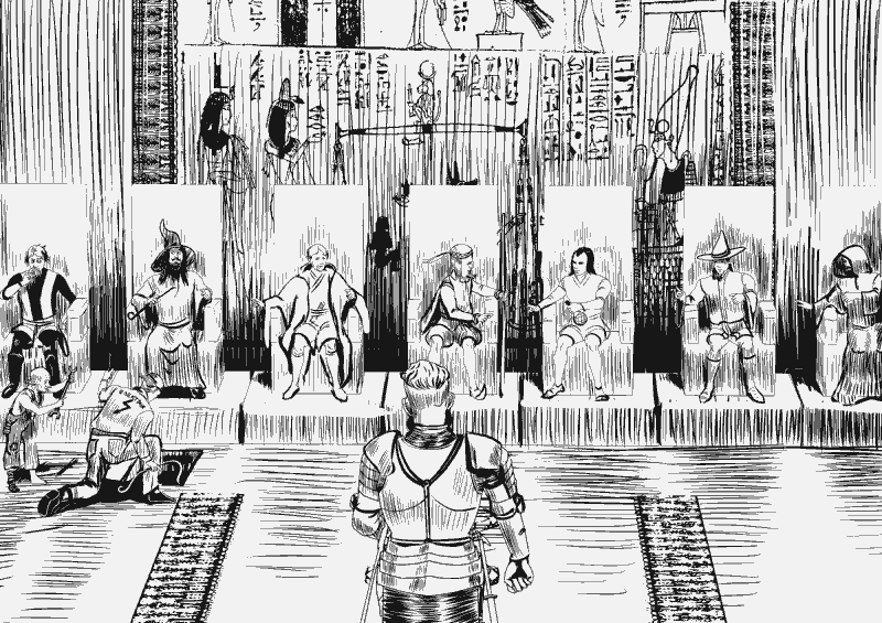 Потолок главного зала, уходящий ввысь на добрую сотню метров, был украшен в условном древнеегипетском стиле. Как и все вокруг. Словно бы та архаичная культура, зародившаяся в глубокой древности на Земле, эволюционировала без сильного влияния со стороны.