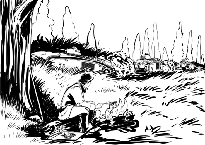 А учитывая тот факт, что выехало легких танков французов на бровку меньше десяти, то «лопнули» они меньше чем за минуту. Пум-пум-пум… С сочными брызгами из бензина и крови…