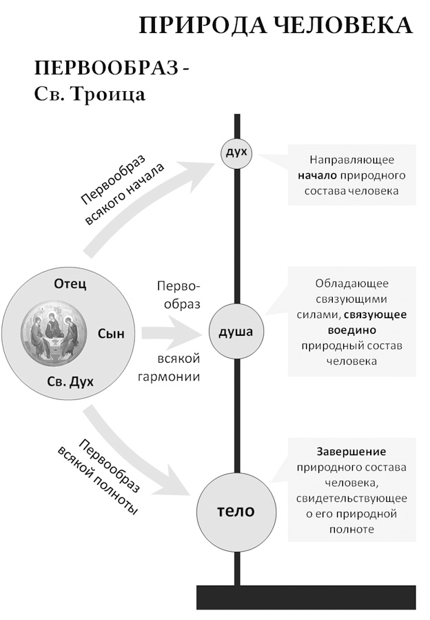 Следующим важным вопросом на пути построения универсальной типологической модели исторических процессов стоит понимание того, каким образом Святая Троица выступает прообразом устроения человека – как в отношении его природы[166], с одной стороны, так и в отношении его ипостасного (макроипостасного) устроения, с другой.