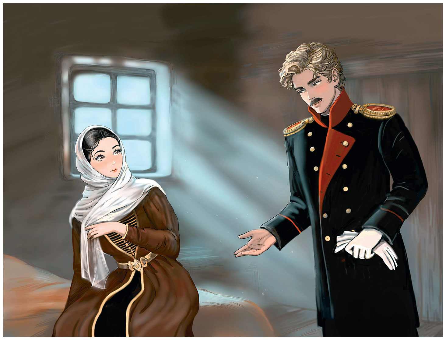 – А вот я вам расскажу. Верст шесть от крепости жил один мирной князь. Сынишка его, мальчик лет пятнадцати, повадился к нам ездить: всякий день, бывало, то за тем, то за другим. И уж точно, избаловали мы его с Григорьем Александровичем. А уж какой был головорез, проворный на что хочешь: шапку ли поднять на всем скаку, из ружья ли стрелять. Одно было в нем нехорошо: ужасно падок был на деньги. Раз, для смеха, Григорий Александрович обещался ему дать червонец, коли он ему украдет лучшего козла из отцовского стада; и что ж вы думаете? на другую же ночь притащил его за рога. А бывало, мы его вздумаем дразнить, так глаза кровью и нальются, и сейчас за кинжал. «Эй, Азамат, не сносить тебе головы, – говорил я ему, – яман[2] будет твоя башка!»
