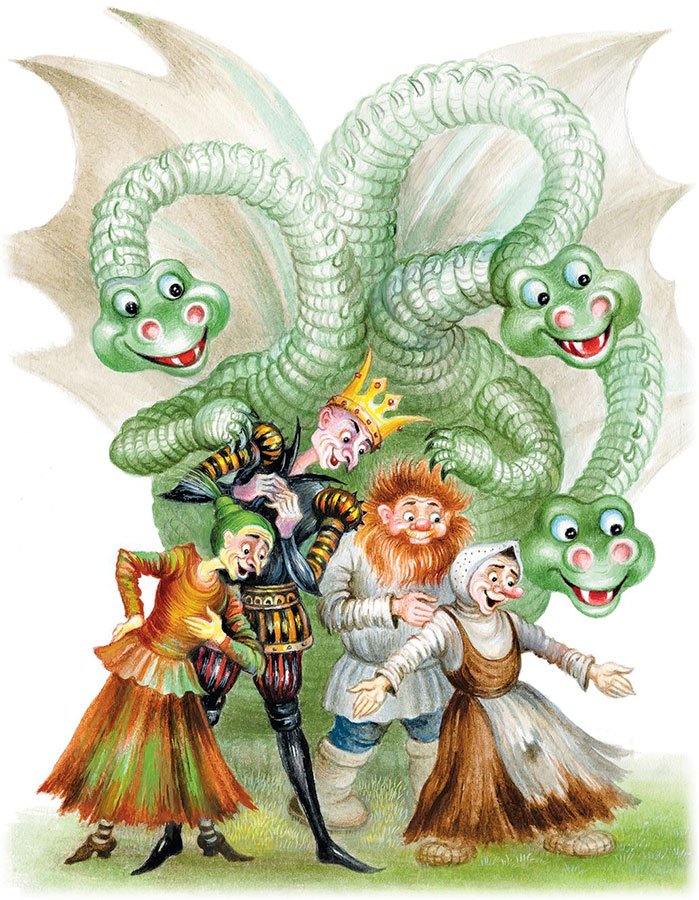 И вот уже около избушки на курьих ножках стоит непонятное чудище. С рогами, лысое, как Кощей, с рыбьим хвостом, как у Водяного, и с громадным выменем.