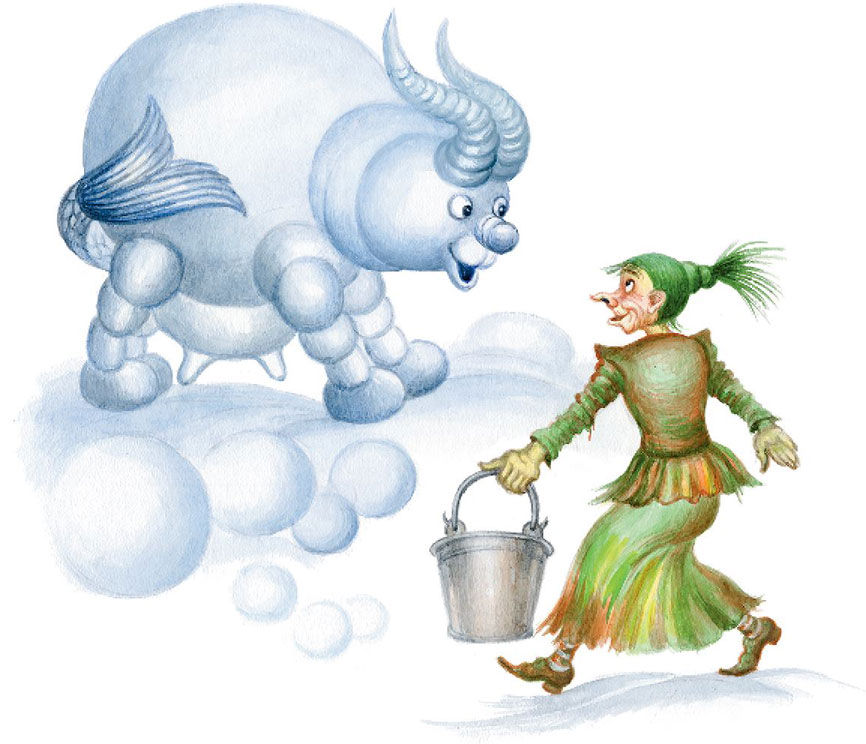 – Никто вас не выгоняет, – решительно сказала Кикимора. – Козу из снега лепить будете. Потом Баба-яга её колдовством своим оживит, вот вам и молоко.