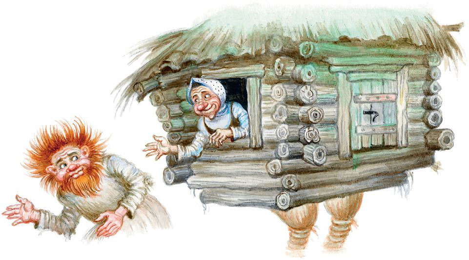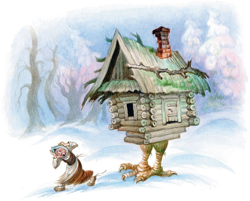 Леший высунулся из дупла громадного дуба, слез с дерева и помчался к избе на курьих ножках.