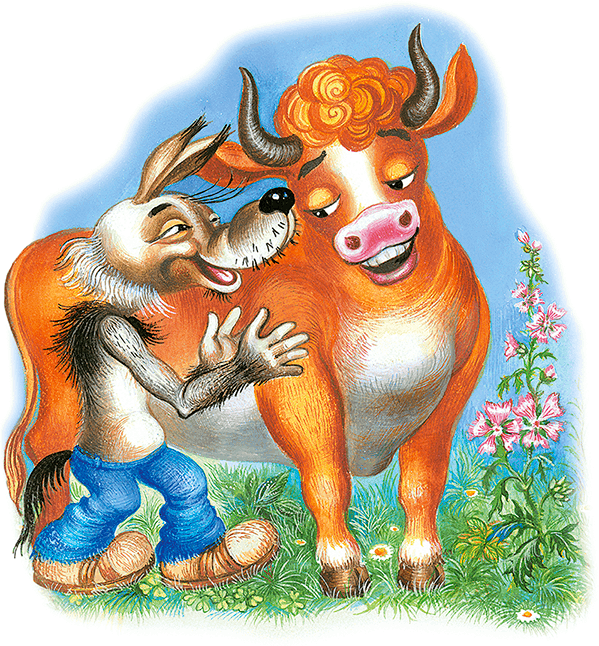 А Волк протянул лапы к Бычку и завопил:
