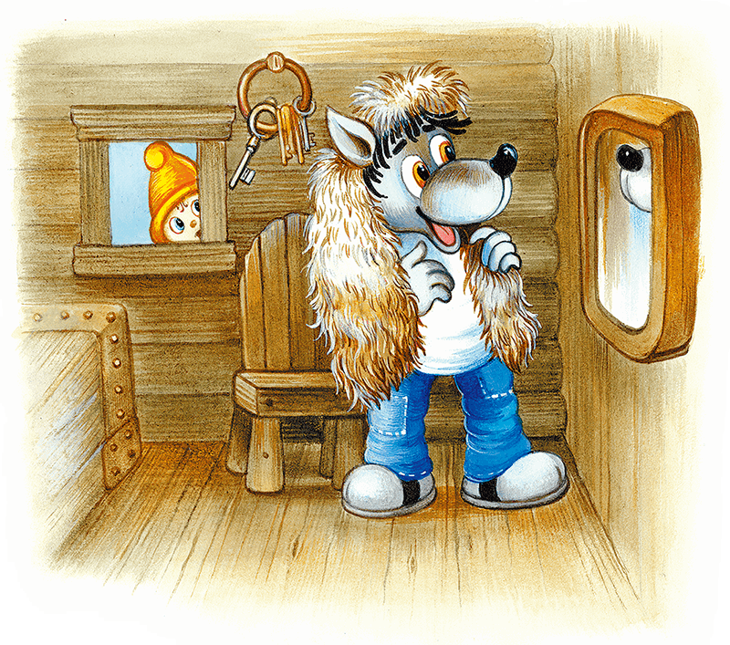 Оторопел Волк, заметался по избе; отыскал зеркало, стёр пыль с него, пригладил уши и посмотрел на себя.