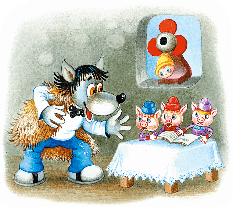 Однажды Вася гулял по лесу и увидел большой-пребольшой дом, в котором жил страшный-престрашный Волк. Он готовился навестить трёх поросят, семерых козлят, Красную Шапочку и её Бабушку.