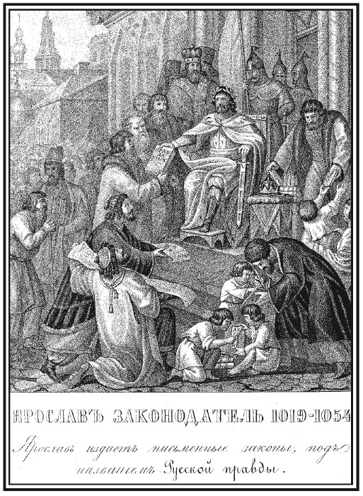Узаконено было издревле, чтобы новогородцы платили в Киев дань повсягодную по две тысячи гривен[51]. Ярослав, презревая отца своего старость, не исправлял повеленного, удерживая у себя ему должное. Подвигнутый за то на гнев Владимир велел исправлять к Новуграду дороги и мосты, хотя итти войною на Ярослава, взять уреченное и мстить сыновнее к родителю презорство. К Ярославу собрались призванные из-за моря для сопротивления варяги. Межусобная война восходила подобна грозной туче, однако по Божиему промыслу нашествием печенегов и преставлением Владимировым отвратилась.