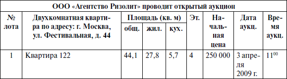 Аукцион состоится 18 августа 2009 г. в 10 ч 00 мин по московскому времени по адресу: 117826, г. Москва, ул. Островитянова, д. 1 «А».