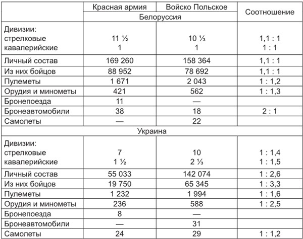 Таблица 5. Соотношение сил на советско-польском фронте к 20 апреля 1920 г.[115]