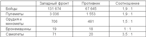 К началу наступления войска Западного фронта (см. таблицу 6) располагались следующим образом. Северная группа войск занимала рубеж: Опочка – Дисна (западнее Полоцка) – Янополье (8 км северо-западнее Витебска). Южнее нее располагалась 15‐я армия (командующий – А.И. Корк, член РВС – Н.С. Тихменев). Ее фронт проходил от Янополья до района 15 км юго-восточнее города Лепель. Далее по восточному берегу Березины действовали части 16‐й армии (командующий – Н.В. Соллогуб, член РВС – А.Э. Дауман). Ее левый фланг находился в районе города Речицы. Судя по данным таблицы 8, советскому командованию удалось создать значительное превосходство в силах над противником. Теперь все зависело от умения командования фронтом организовать наступление.