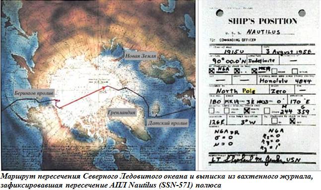 Таким образом, долгожданная цель была достигнута – первое в мире судно – атомная подводная лодка ВМС США, прошла в подводном положении точку Северного полюса.