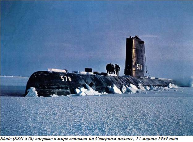 Как видим, в 1958 году американское командование спланировало штурм Северного полюса не одной, а двумя атомными подводными лодками, и не с одного направления, а одновременно с двух: из Тихого океана и из Атлантики. При этом одной подводной лодке, очевидно, было приказано преодолеть Северный Ледовитый океан без всплытий в полыньях (Nautilus), а для второй такие всплытия были обязательными (Skate). Данные факты подтверждают важность поставленной, несомненно политической, задачи – во что бы то ни стало достичь Северного полюса, а если позволит обстановка, то и всплыть на нём.
