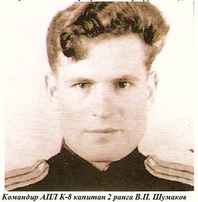 Перед Северным флотом стояла более амбициозная задача – штурм Северного полюса. Для похода на полюс с самого начала года готовили новую АПЛ пр.627А К-8 под командованием кап. 2 ранга Шумакова Василия Петровича из состава 206-й отдельной бригады Подводных сил Северного флота. Лодка вступила в строй 31 декабря 1959 г. Причём приёмный акт был подписан не на заводе в Северодвинске, а после её прибытия в Западную Лицу. Как вспоминал штурман корабля Ю.А. Портнов, в ходе совмещённых ходовых и государственных испытаний: «Возникали проблемы с режимом обитаемости. Из-за микро течей в парогенераторах аэрозольная активность значительно превышала норму. Для понижения уровня аэрозольной активности было принято решение о перемешивании воздуха между отсеками. О, ужас! Воскликнут современные специалисты в области эксплуатации атомных энергетических установок на подводных лодках – Прим. авт. О полученных нами дозах облучения делались записи в секретных медицинских книжках, которые хранились у корабельного врача. При убытии с корабля они сдавались в специальную поликлинику и там уничтожались. Возможно, более принципиальное отношение электромеханической секции государственной комиссии к исполнению требований руководящих документов позволило бы исключить ядерную аварию на этой АПЛ 13 октября 1960 года». В последних числах декабря вместе с ней в Западную Лицу прибыли ещё две атомные подводные лодки того же проекта. Каждой из них в новом году были поставлены определённые задачи.