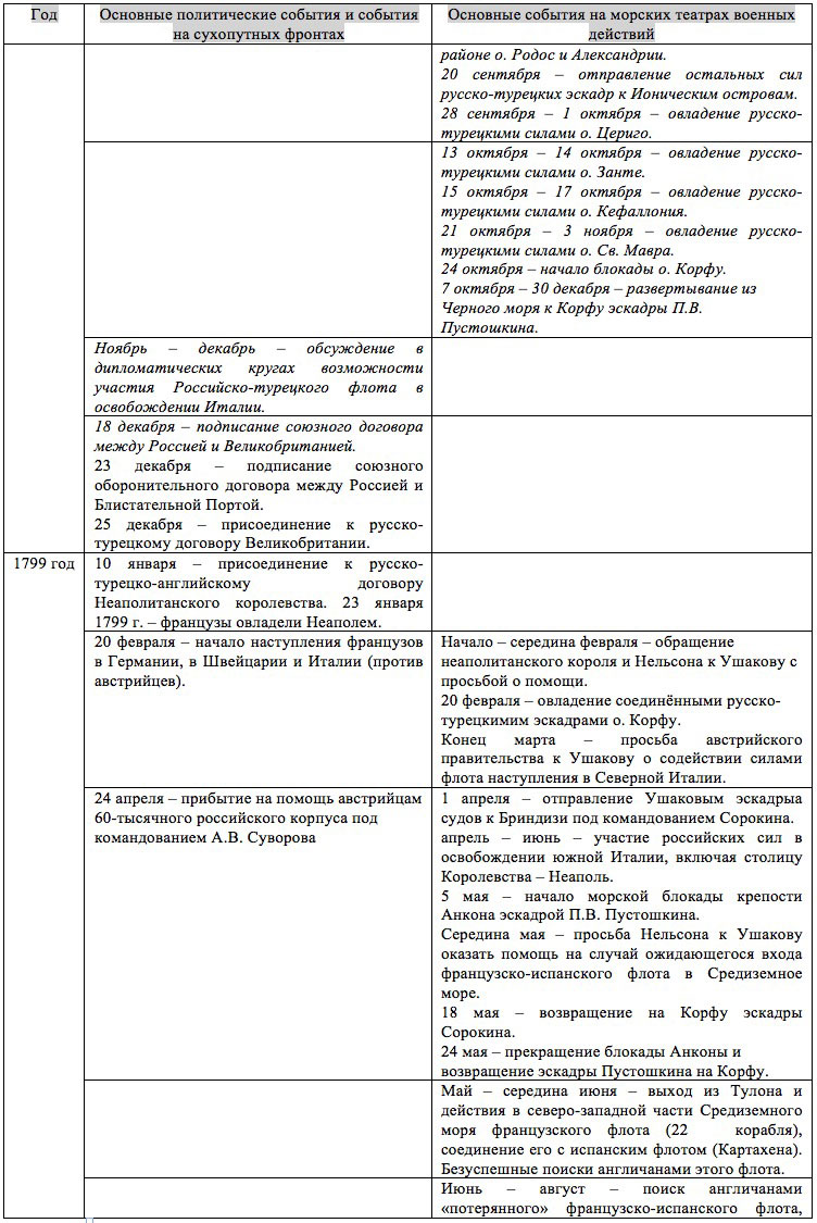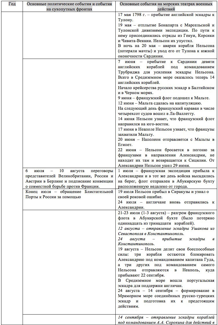 Далее приступим к описанию новых подвигов Ф.Ф. Ушакова, предварительно рассмотрев хронику основных событий.