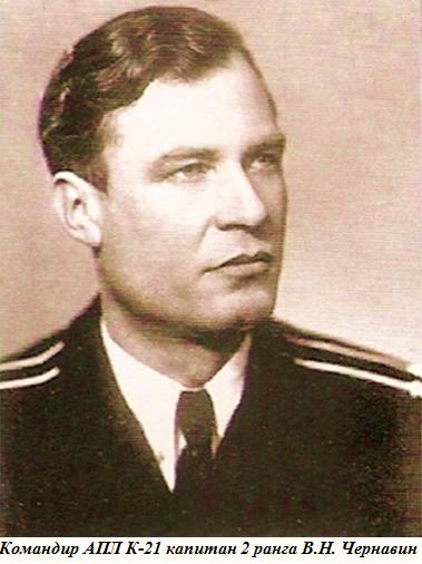 Естественно, что готовили мы и лодку-дублёр на случай непредвиденных обстоятельств. Это был атомоход, значительно моложе «Ленинского Комсомола». Командовал кораблём, как я уже сказал, капитан 2 ранга В.Н. Чернавин, ныне адмирал флота, главнокомандующий ВМФ». Отсюда следует, что К-21 выполнила свою миссию без всяких происшествий. Летом 1962 г. она просто-напросто находилась в резерве, в готовности заменить К-3. В этом смысле нельзя не отметить предусмотрительность С.Г. Горшкова и командования флотилии, – они попросту не могли допустить срыва задуманного похода к полюсу. Владимир Николаевич Чернавин же никогда не сетовал на случившееся и, практически, до 90-х годов не напоминал об этой ситуации. Его личная судьба в дальнейшем оказалась и счастливой, и сложной. На Северном полюсе он побывает на ракетном подводном крейсере стратегического назначения в 1972 г.